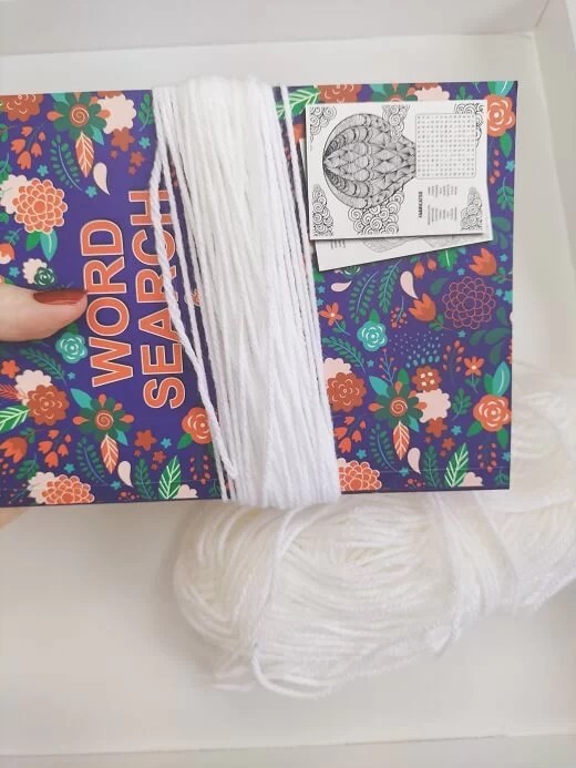Wrap the yarn around the width of the book roughly 40 times. Cut the yarn only on the one side of the book.